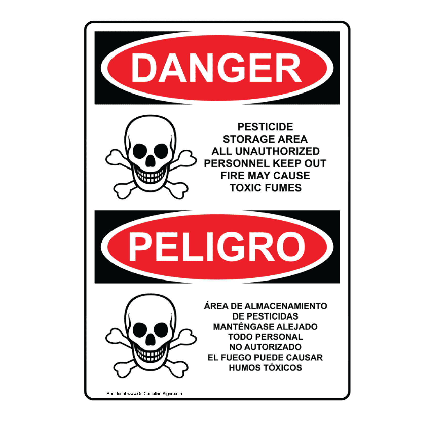 Your safety preparedness & accident prevention message is clearly communicated to staff, guests, and inspectors with the help of this OSHA- Think Sign in English & Spanish.